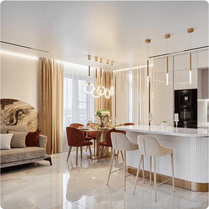 Кухня-гостиная, 2 санузла, спальня, детская, прихожая