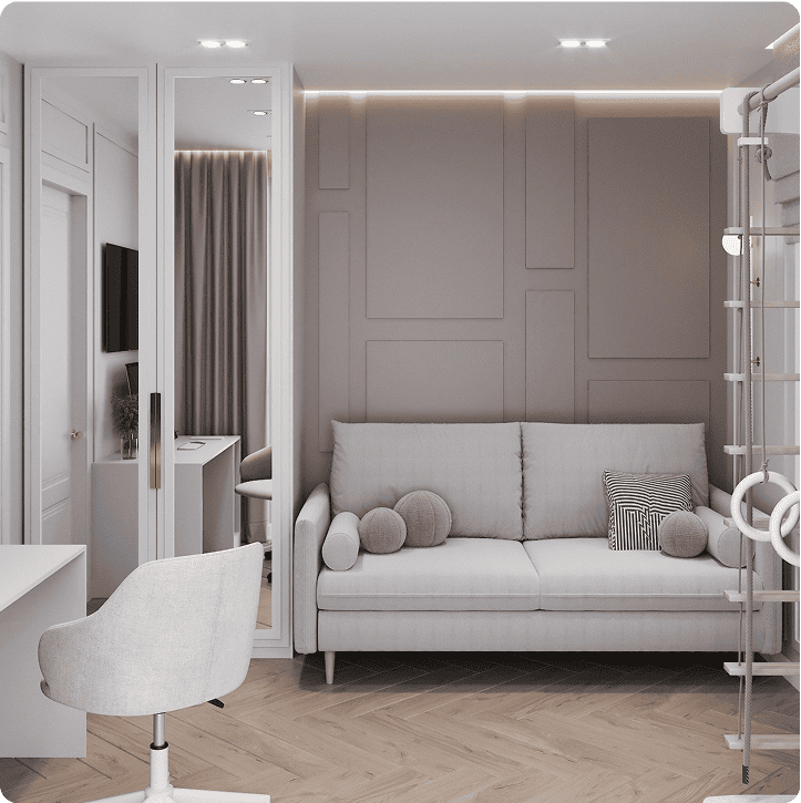 Кухня-гостиная, 2 санузла, спальня, детская, гостевая