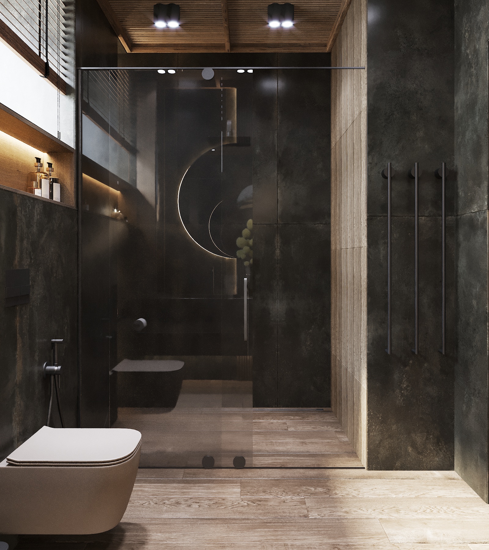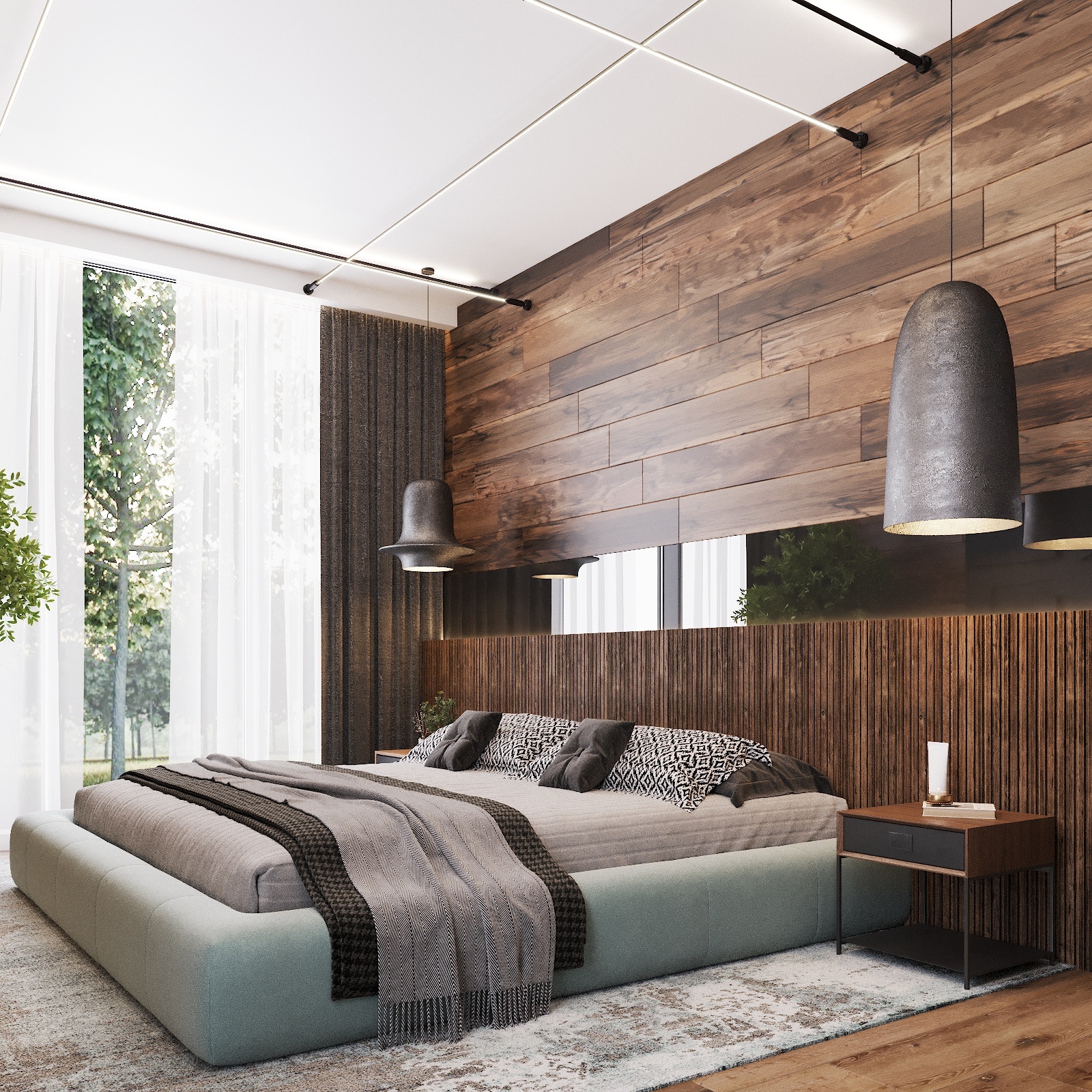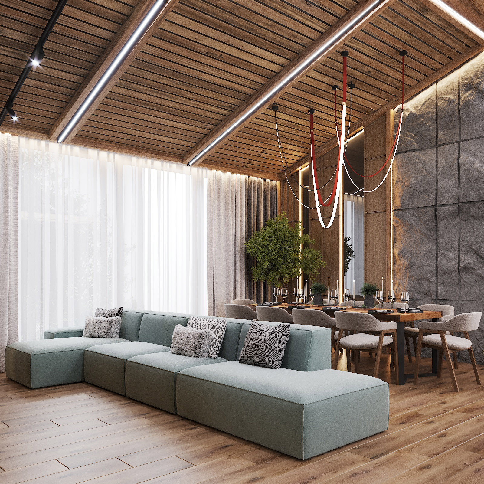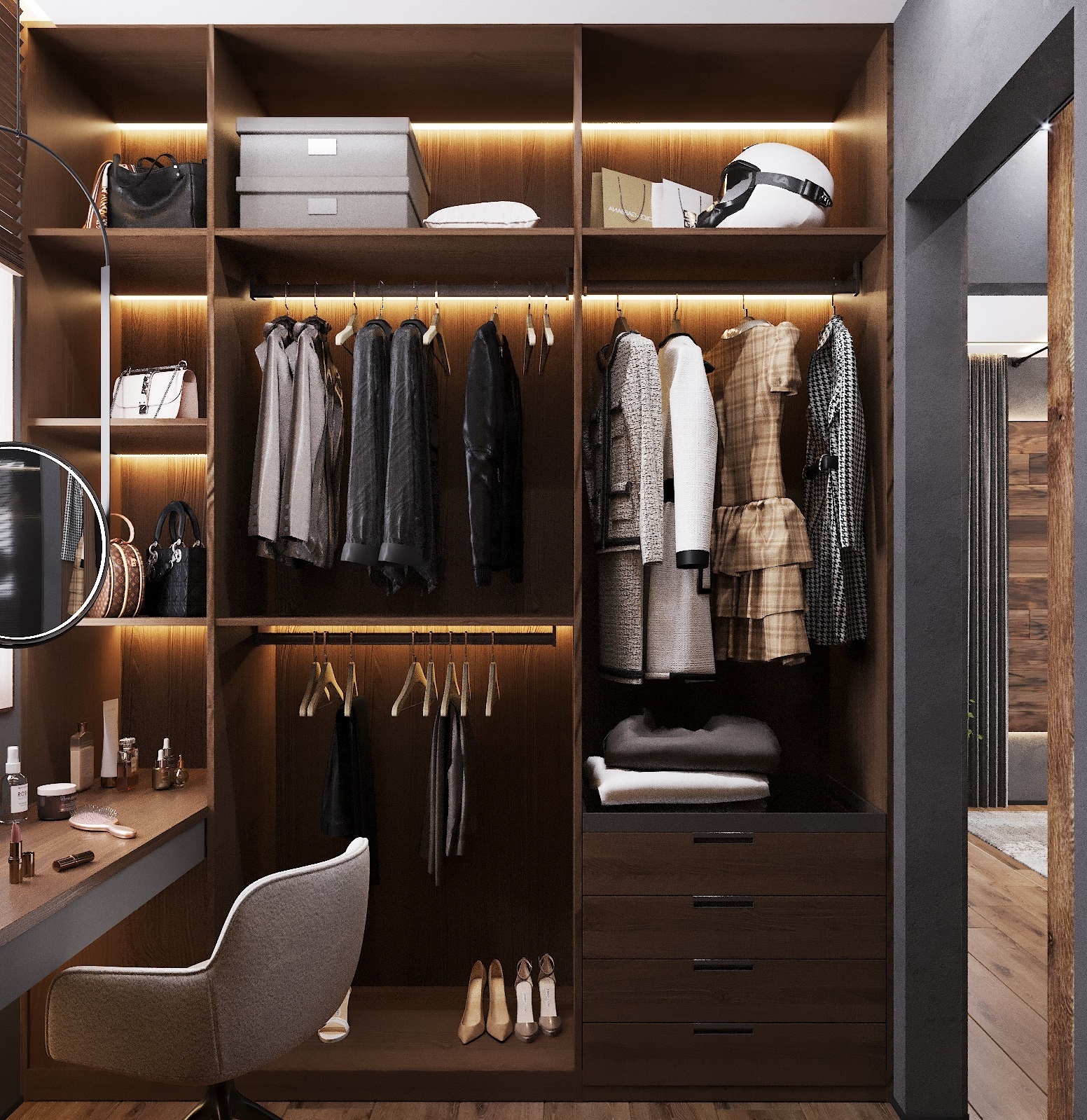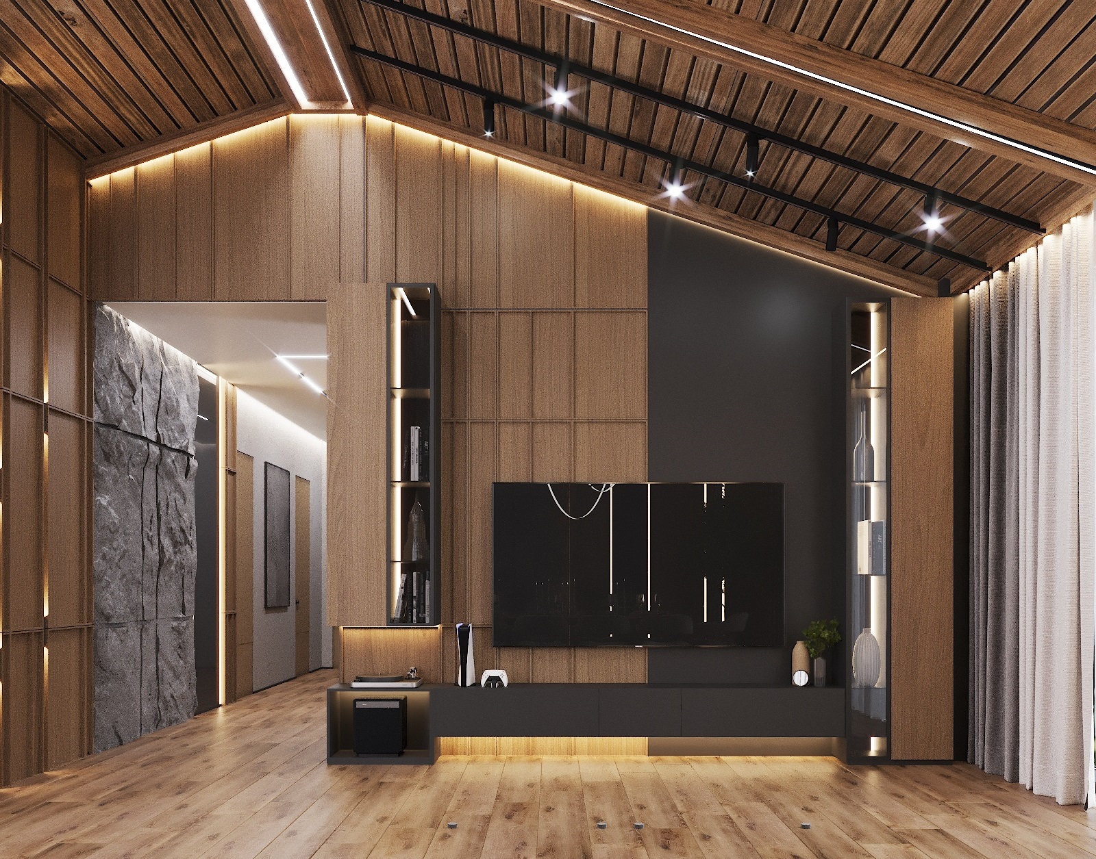 Кухня, гостиная, ванная, душевая с сауной, кабинет, коридор, 2 спальни, гардеробная
