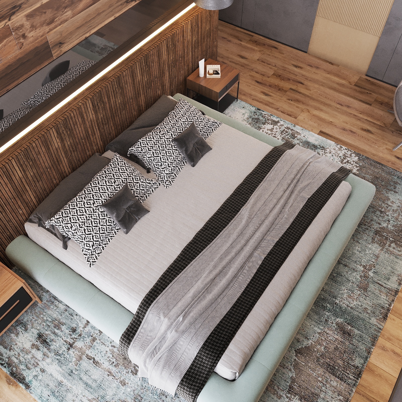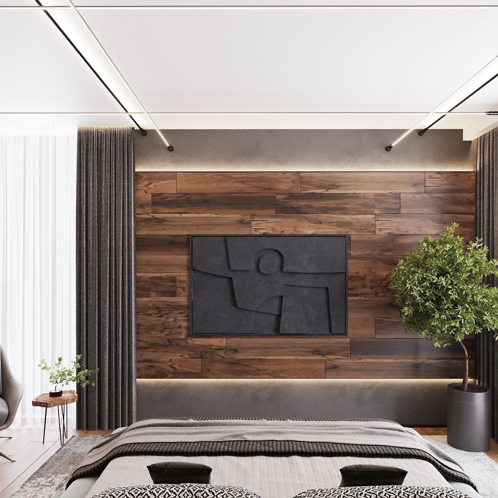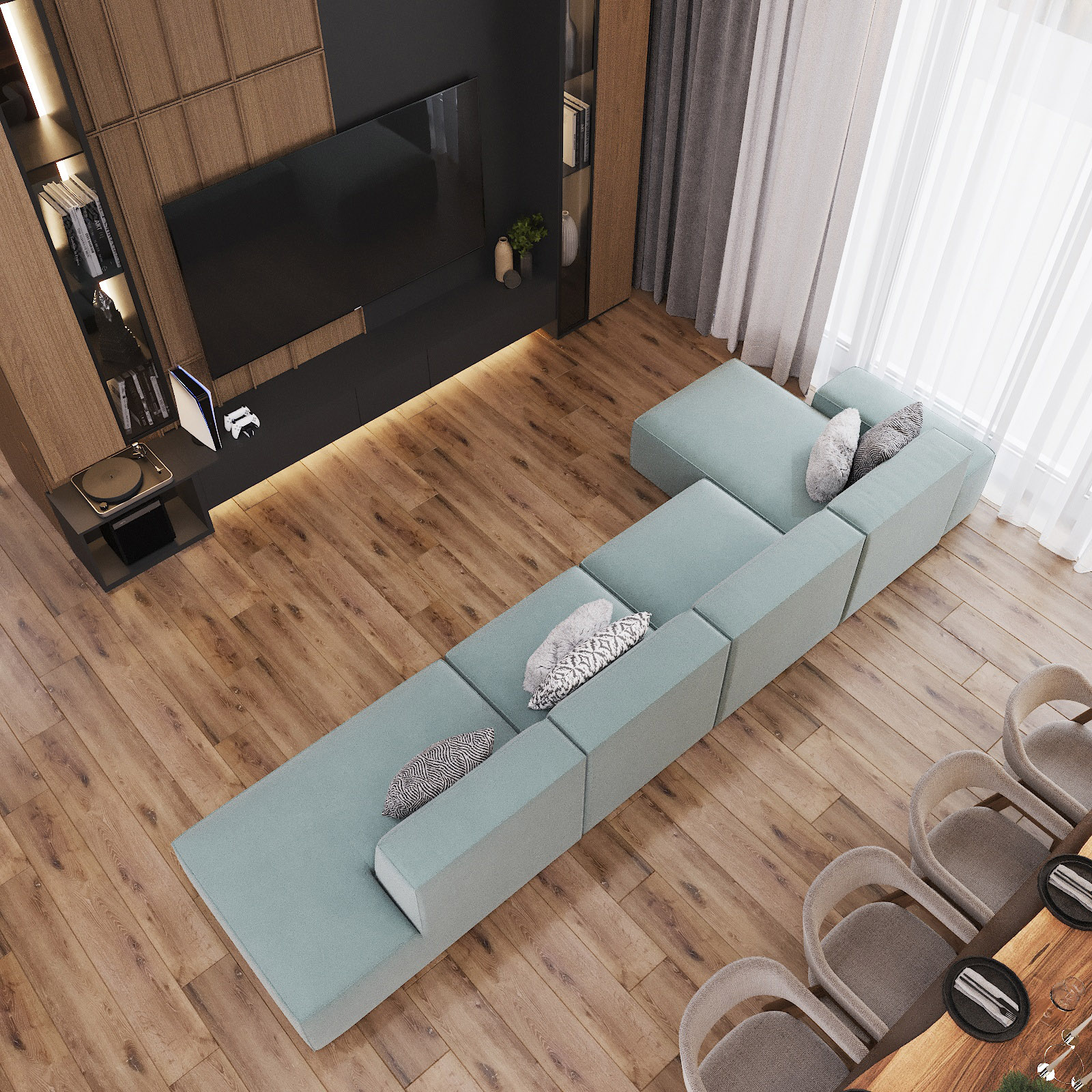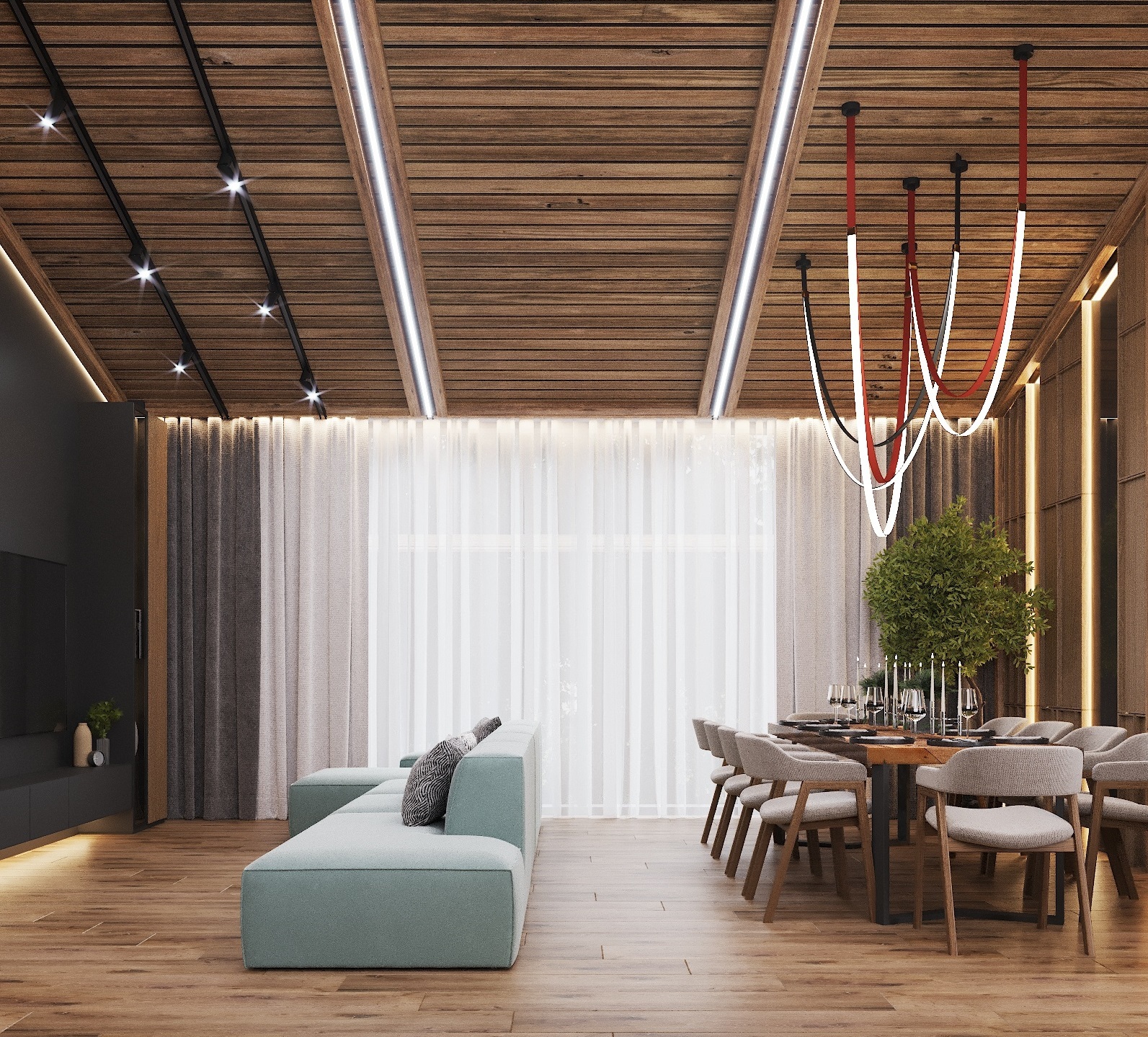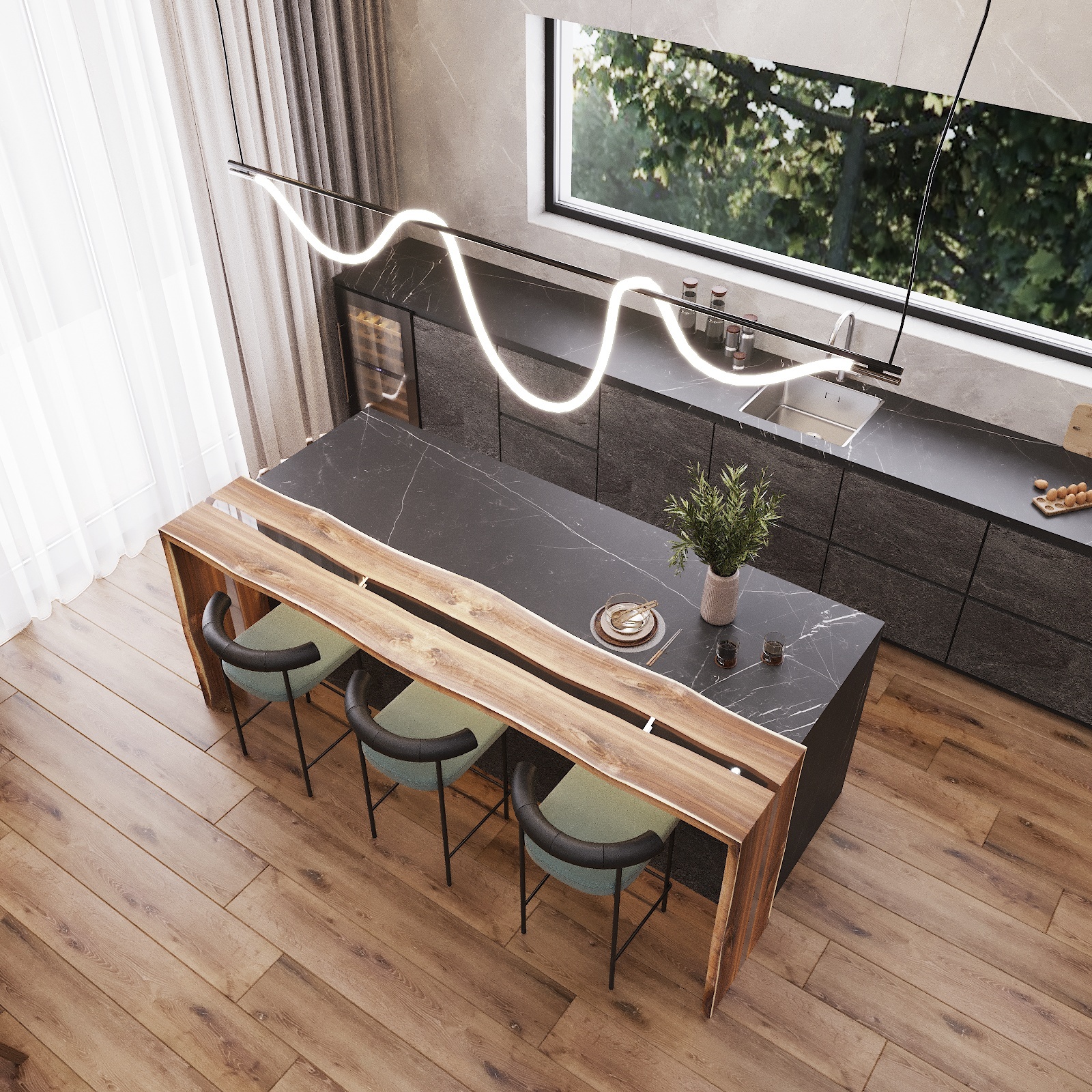 Кухня, гостиная, ванная, душевая с сауной, кабинет, коридор, 2 спальни, гардеробная