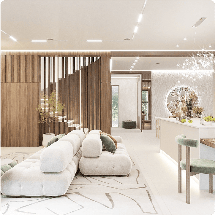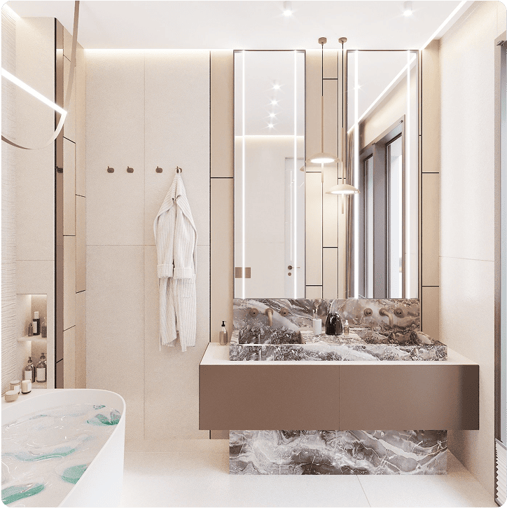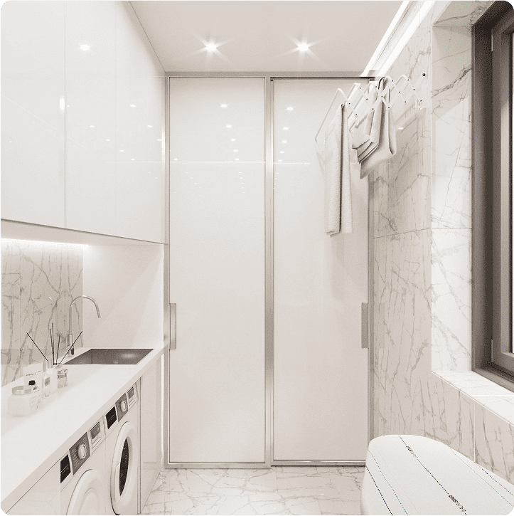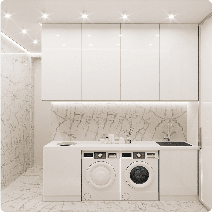Кухня-гостиная, коридор, 2 санузла, прачечная, спальня, гардеробная,