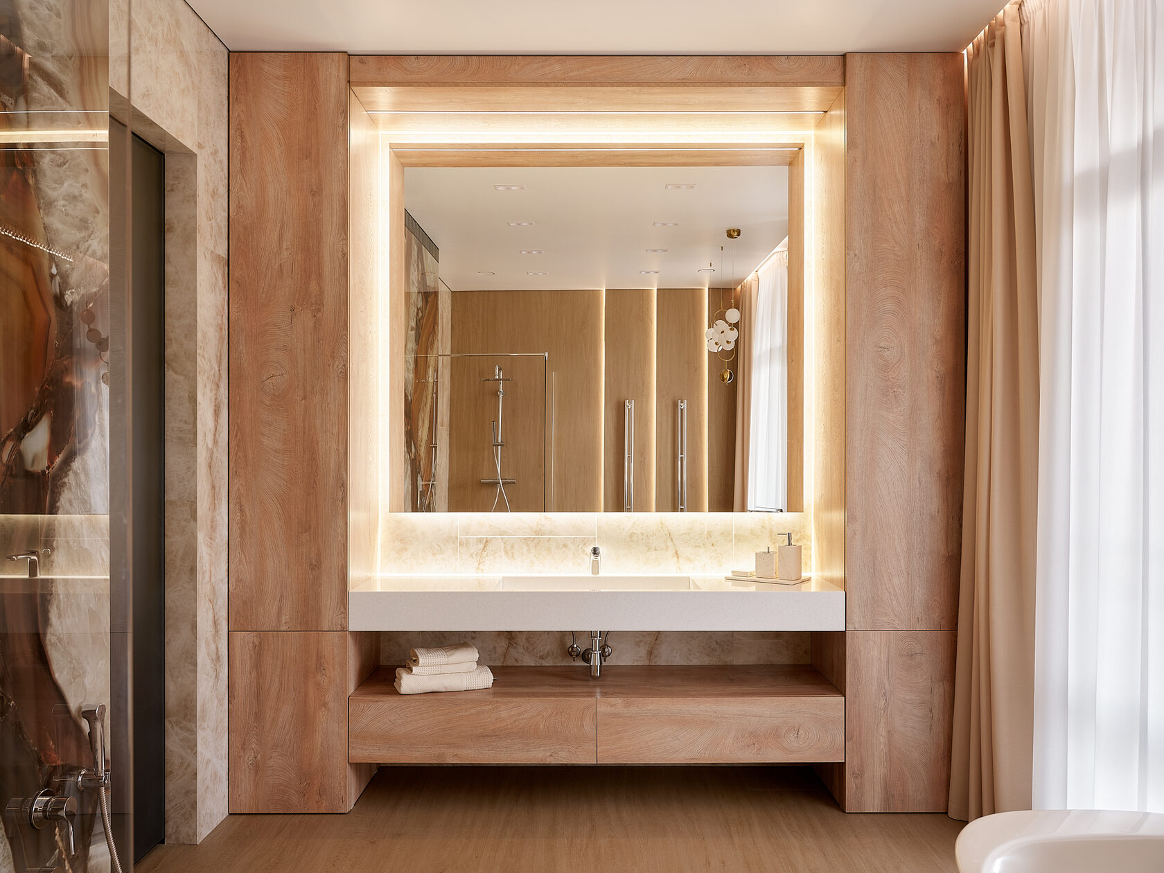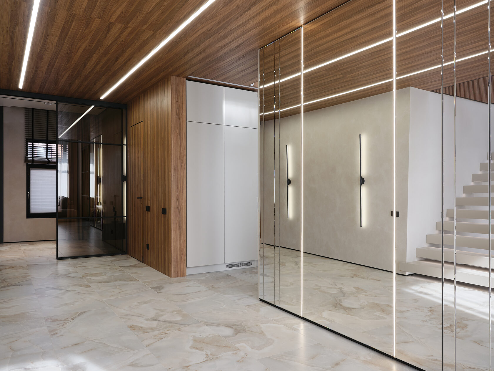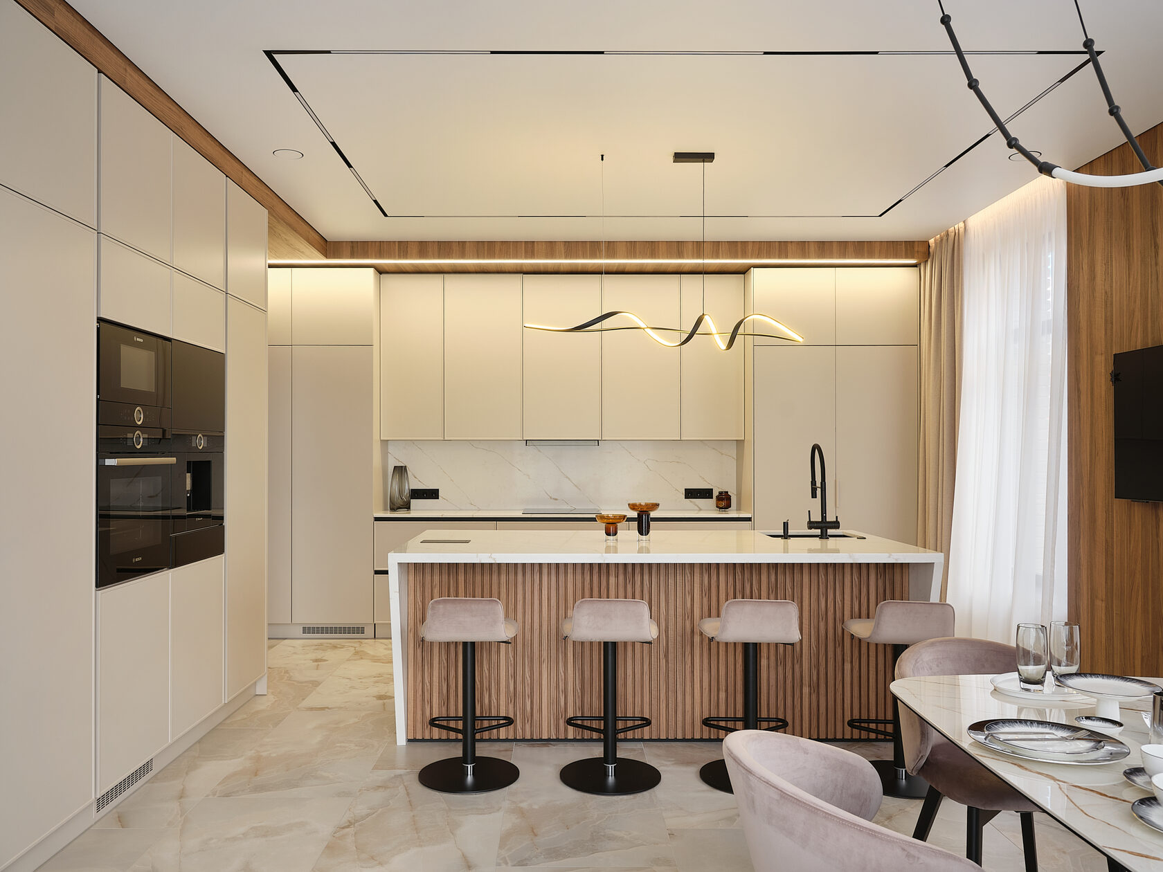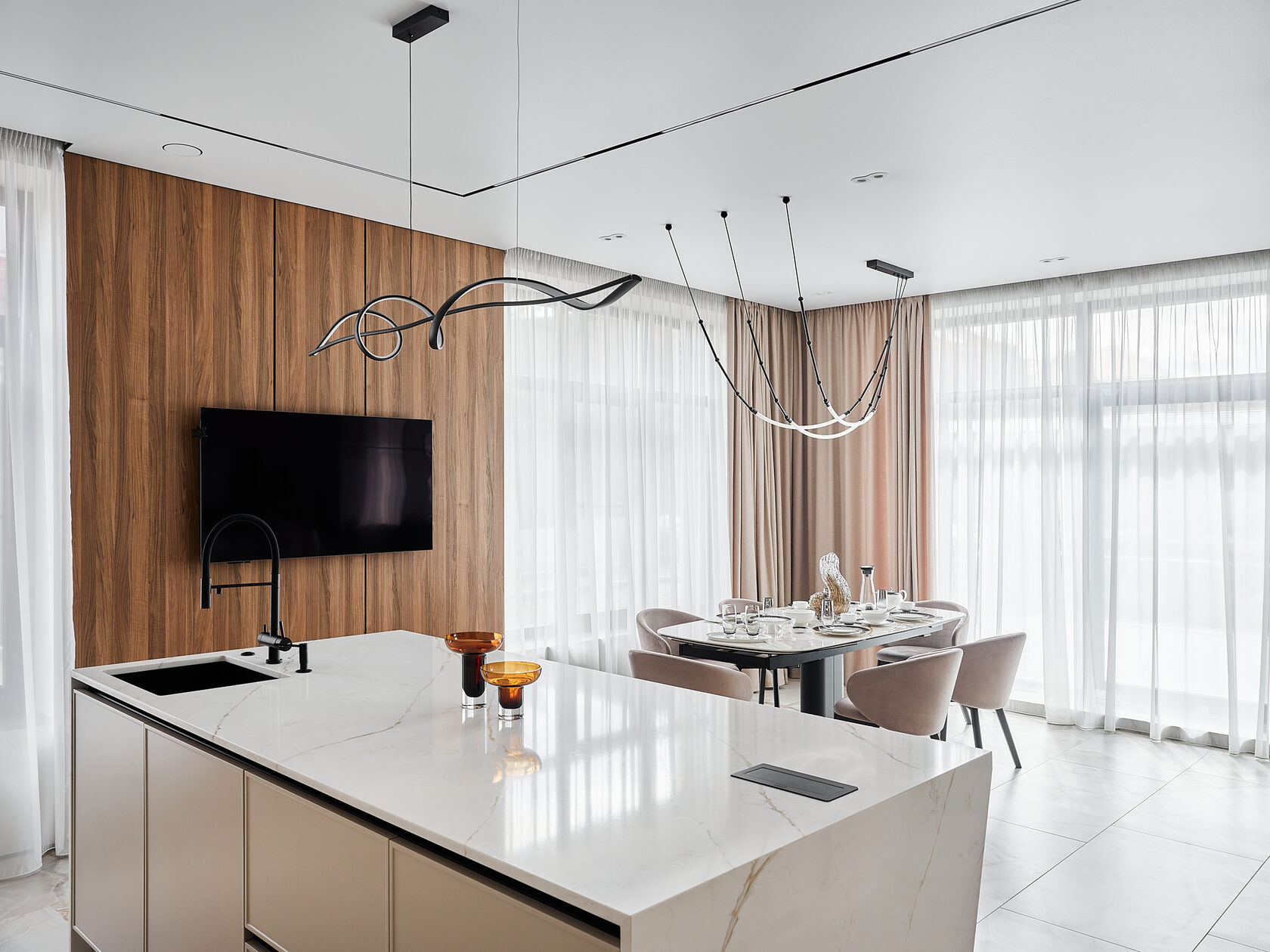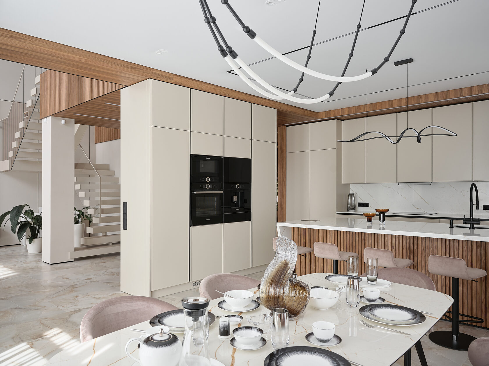 Кухня-столовая, гостиная, второй свет, две детских, мастер спальня, 3 санузла, постирочная, гардеробные