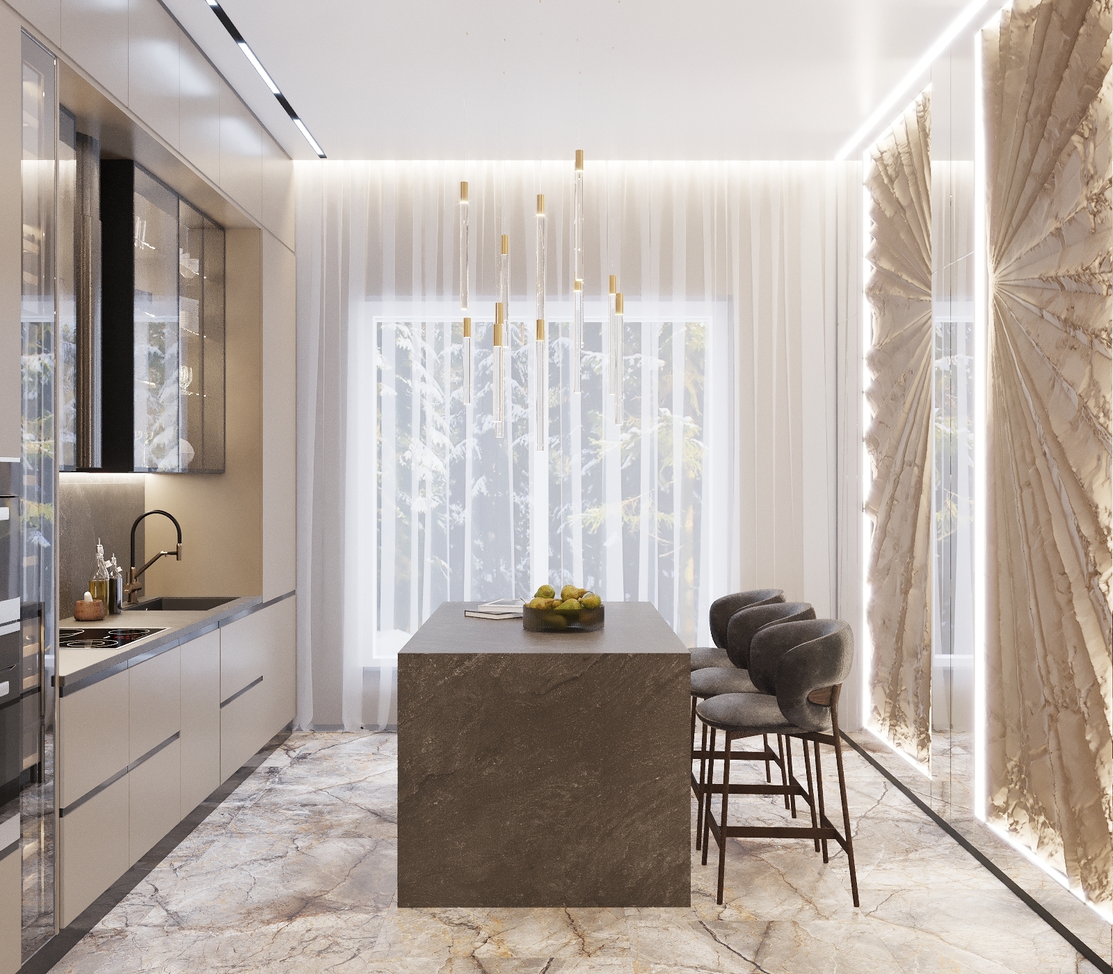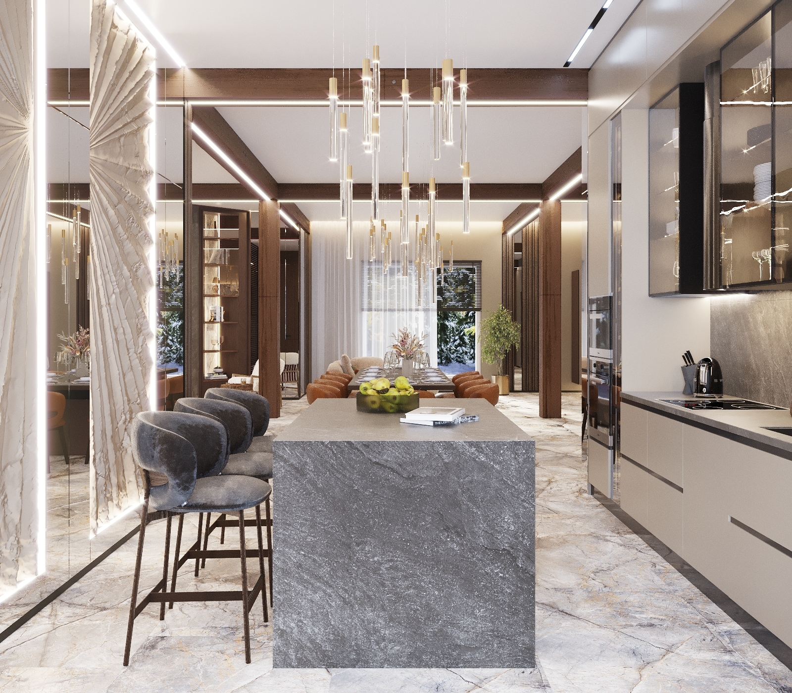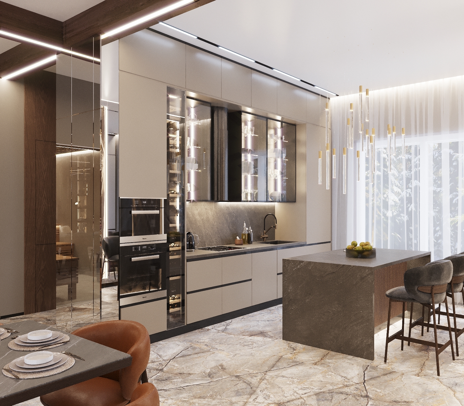 Кухня-гостиная, сан узел,